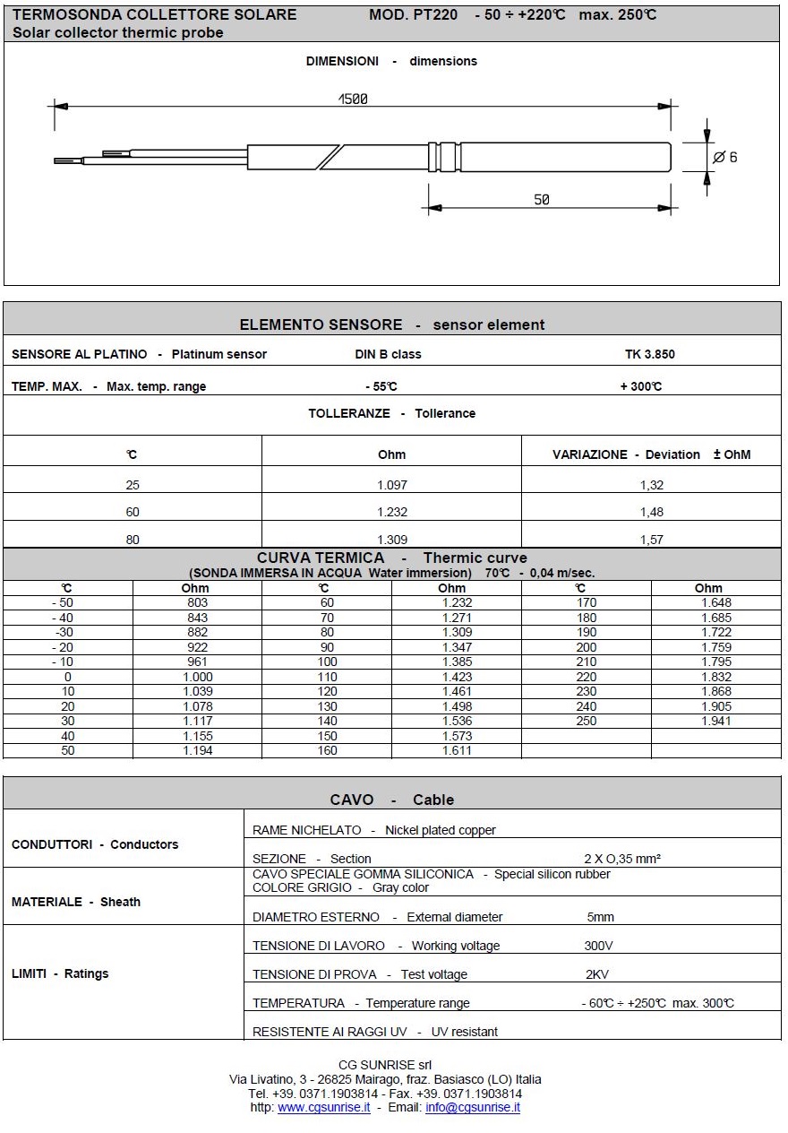 PT1000-220 – TERMOS. COLL. SOL.